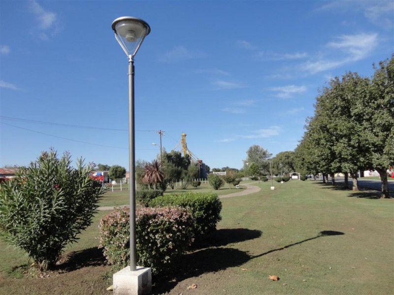 En tarea conjunta con la Cooperativa Eléctrica se están reacondicionando las torres de altura. Por otro lado, con la instalación eléctrica reconstruida, estimamos en corto plazo poder iniciar el recambio de los artefactos de iluminación que acompañan a las veredas de la plaza.