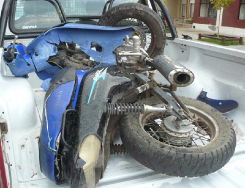 El día sábado 27, personal de la Policía Comunal tomó conocimiento de un accidente de tránsito ocurrido en la intersección de calles San Martín e Yrigoyen de este medio. Constituido personal policial estableció que efectivamente y por causas que se investigan habían colisionado un vehículo marca Fiat Palio, color gris, dominio DBF-966, conducido por Dino Valinotti, con una motocicleta marca Gilera 110 cc., en la cual se movilizaba la ciudadana María Gabriela Coronel. Producto del siniestro, la última mencionada sufrió lesiones de distintas consideraciones, lo que motivó su traslado al Hospital local. Consecuentemente se instruye IPP caratulada "Lesiones Culposas" con intervención de la UFI 3 de Mercedes.