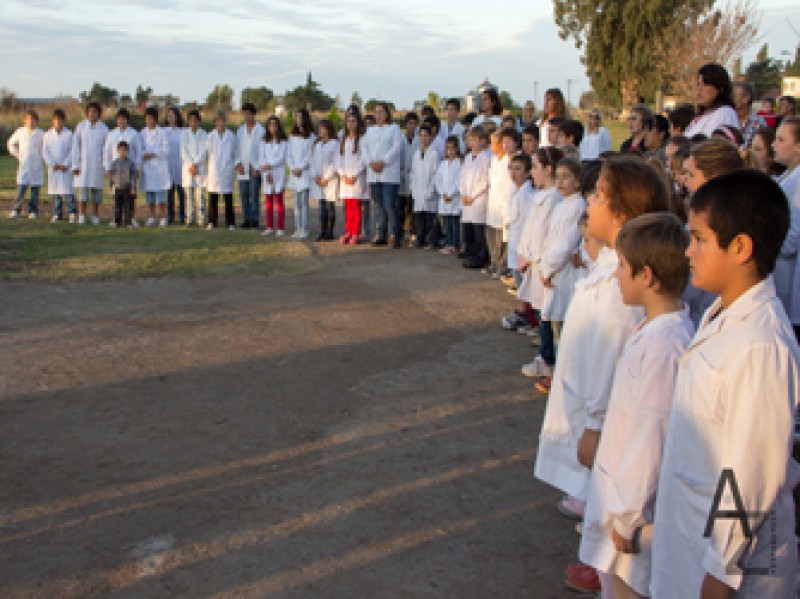 El delegado municipal, Oscar Carretero, el concejal Walter Bertolini, la presidenta del consejo de administración de la cooperativa, María Rosa Albín, el gerente de la cooperativa, Néstor Zabaleta, hermanas de la iglesia local, ex combatientes, alumnos y docentes de la EPB N°13 y público en general.