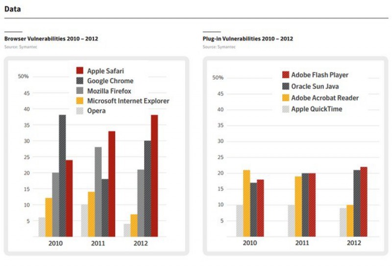Es una buena pregunta. Nos encontramos acá con Safari, que está muy relacionado con que los atacantes están buscando una vulnerabilidad que afecte tanto a los dispositivos con iOS como a los equipos con MAC OS. Chrome es un navegador que se popularizó entre los usuarios por su velocidad, pero también es parte de lo que usa Android. Estamos viendo que si bien las vulnerabilidades de IE y Firefox decrecieron, Safari y Chrome subieron, porque están muy relacionados con los dispositivos móviles. Las netbooks prácticamente desaparecieron de la Argentina y la gente está comprando tablets, que vienen con iOS o Android.