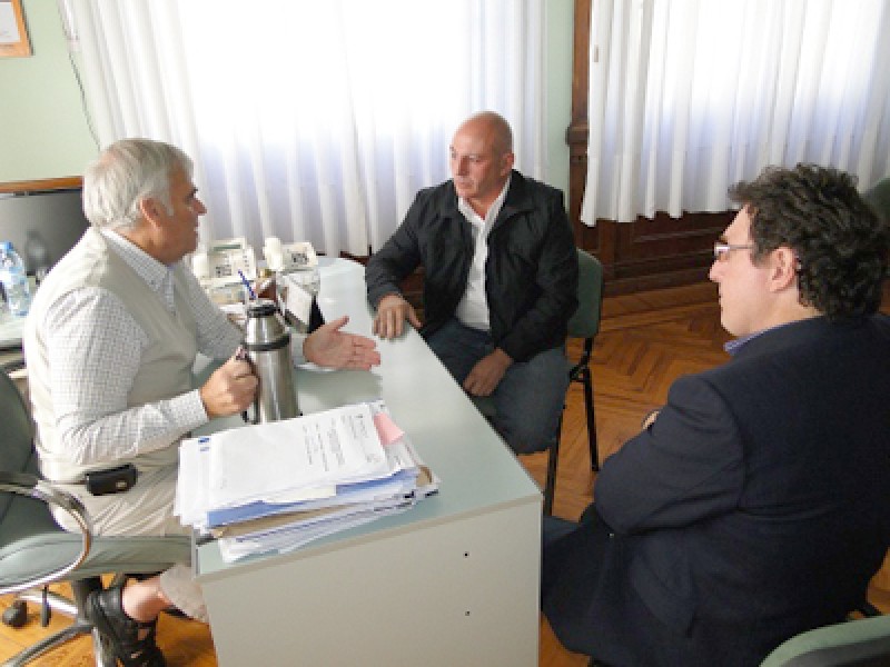 En la mañana de ayer, el intendente municipal Dr. Walter Battistella, junto al Jefe de Gabinete, Dr. Marcelo Gago, recibió en su despacho al presidente del Organismo de Control del Agua de la Provincia de Buenos Aires (OCABA), Dr. Horacio Delgado, con el fin de dialogar respecto al vencimiento de la concesión del servicio de agua y cloacas de la CEyS "Mariano Moreno" Ltda..