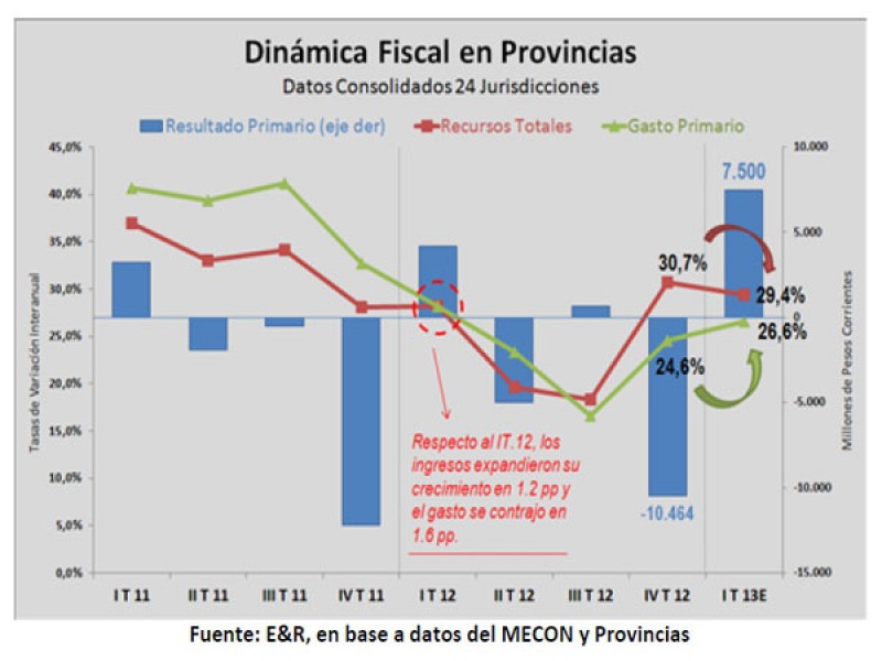 De convalidarse estas cifras, E&R estima que "las provincias afrontarían un déficit primario de $11.700 millones y un rojo financiero de $19.000 millones, con sendas subas interanuales de 10% y 16%, respectivamente".