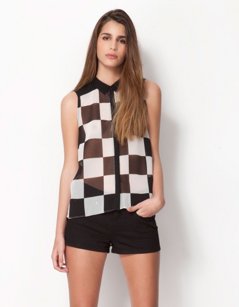 Las camisas, camisetas e incluso chaquetas, nos dan la facilidad de incluir el estampado de damero en nuestros looks a través de propuestas muy versátiles. Me gusta salir un poco de tanto blanco y negro y que las opciones se aplien, aunque reconozco que me gusta mucho la camisa sin mangas de Bershka. Combina tu camiseta damero con unos vaqueros o unos pantalones de colores, y se le aportas un toque de amarillo eloutfit será perfecto.