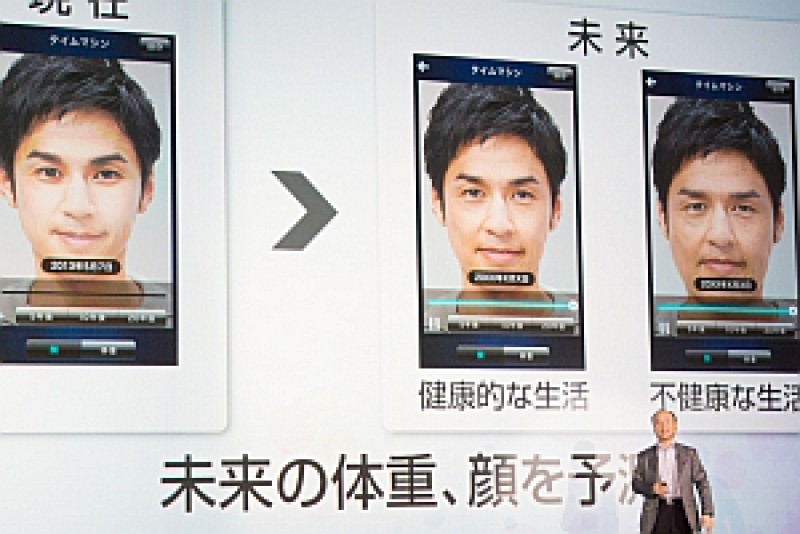 El grupo de telecomunicaciones Softbank propondrá una aplicación que permite ver la evolución del rostro de una persona en función de la vida que lleva.