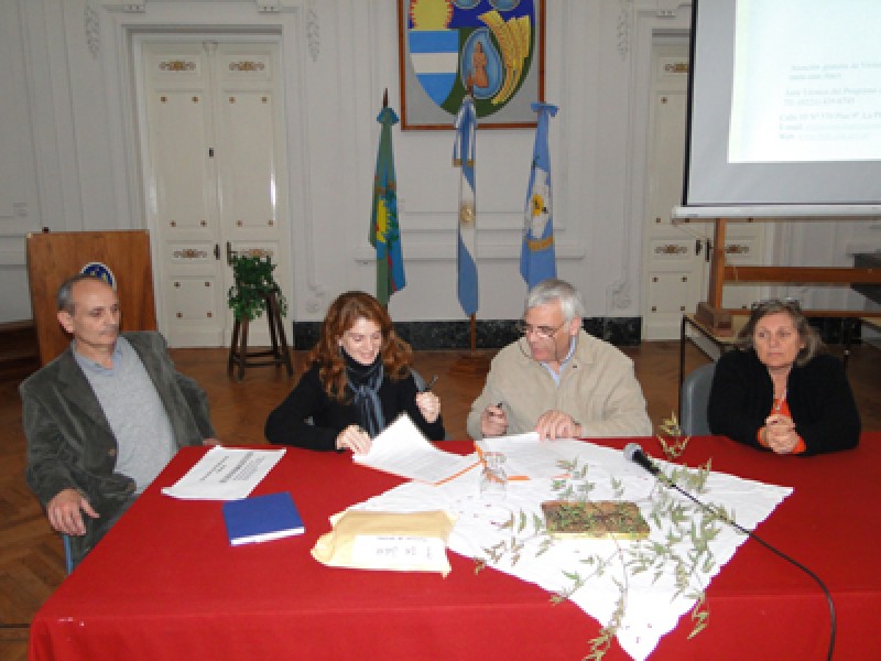 En el mediodía del día jueves se llevó a cabo en el Salón Blanco del Palacio Municipal el acto de firma del convenio entre el Municipio y el Ministerio de Desarrollo Social de la Provincia de Buenos Aires, mediante el cual quedó conformada oficialmente la Mesa Local para la Prevención y Erradicación de la Violencia Familiar.