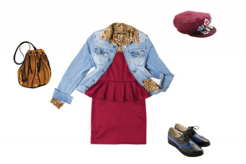 Minivestido musculosa (Inversa, $259), camisa estampada en animal print (Akiabara, $598), chaqueta de denim elastizada (Uma, $938), cartera de gamuza (Desiderata, $1050), gorro con apliques (Las Pepas, $799), zapatos abotinados (Blaquè, $729)