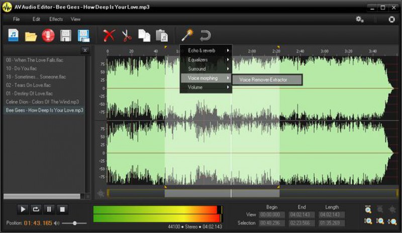 AV Audio Editor es un software gratuito que podemos utilizar en Windows Xp, Vista, 7 y 8. Soporta la edición básica de ficheros de audio, como cortar, pegar, copiar y mezclar, también permite aplicar diferentes efectos y filtros de audio para los usuarios más avanzados.