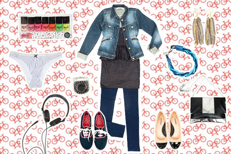 Campera con cierres (inversa,$398). Vestido con volados(47 Street, $299). Jeggings (Portsaid, $250). Zapatillas (Seco, $350). Balerinas bicolor (Lucerna,$329). Vedetina (Sweet lady,$75). Aros(Ver,$30). Pulsera (Maria Rivolta,$70). Bandolera combinada (Muaa,$240). Set de esmaltes (Muaa,$75). Headphones (Sony,$149). Anillo (Muaa,$25).