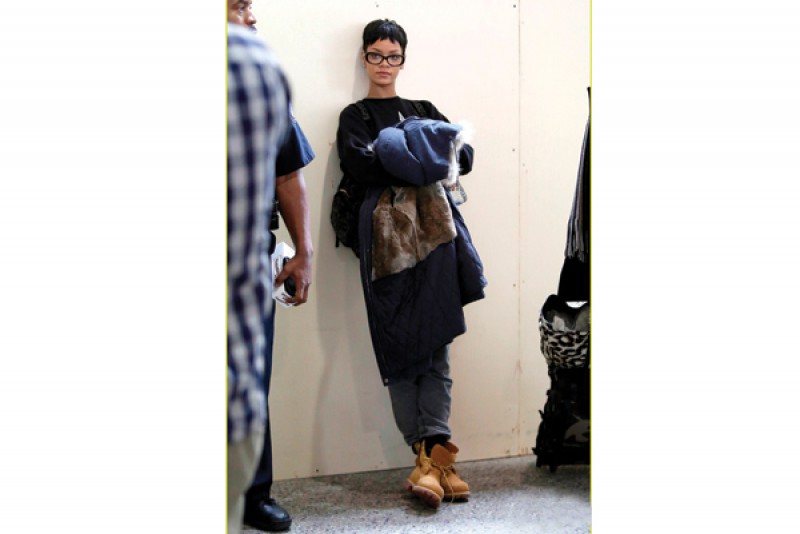 No hay nada más aburrido que esperar un vuelo demorado sin horario estimado de llegada. Pero la perspectiva cambia un poco si la persona que está parada al lado tuyo es… ¡Rihanna! Y sí. Eso es lo bueno de este cool hunting: por más divas que sean, están ahí como vos y les pasan las mismas cosas. El look: la camaleónica cantante dejó su perfil sexy de lado y optó por un estilo andrógino. Buzo estampado, jeans desgastados bien holgados, botas Panamá Jack (un nuevo preferido entre las celebs) y unas gafas hipster. Fashion police: look cómodo para el invierno, aunque esas botas no son aptas para las que sufren porque se les hinchan los pies con la altura.