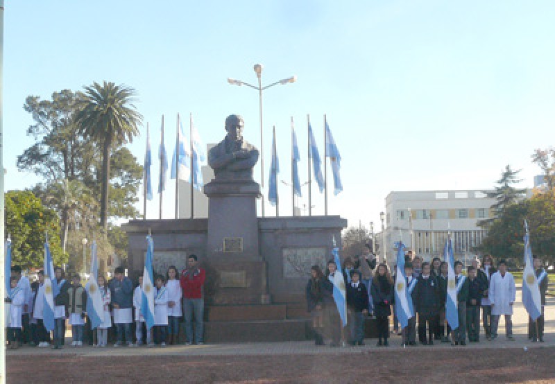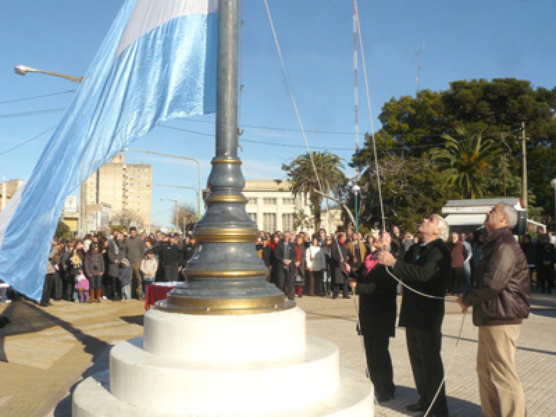 Alrededor de las 10,30 y luego que se hicieran presentes las distintas autoridades municipales, educativas, eclesiásticas y alumnos de los diferentes establecimientos escolares y del ingreso de las Banderas de Ceremonia, se procedió al izamiento de las enseñas. Posteriormente, el intendente municipal, Dr. Walter Battistella, colocó junto al presidente del HCD, Dr. Horacio Baglietto, y la Inspectora Jefe Distrital, Iris Esterlich, una ofrenda floral en el monumento en homenaje al creador de la Bandera. A continuación, se escucharon las palabras del pastor Juan Carlos Rodríguez quien ofició una oración religiosa, al igual que el párroco de la Iglesia Catedral, padre Carlos Tibberi.