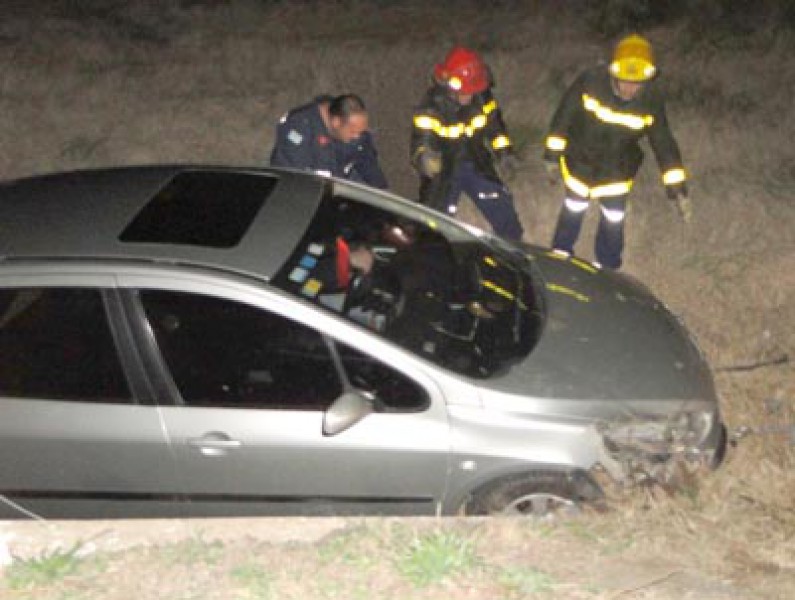 Por causas que tratan de establecerse, el vehículo Peugeot debió realizar una brusca maniobra para esquivar la motocicleta -que circulaba sin luces-, y se despistó bruscamente, terminando en una alcantarilla.