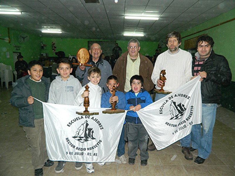 La Escuela de Ajedrez Héctor Decio Rossetto, agradece profundamente la participación de los jugadores Diego Mussanti MF, Oscar Falcinelli y Agustín Vergara, de la Asociación Nuevejuliense de Ajedrez, quienes la representaron brillantemente en la jornada de Saladillo.