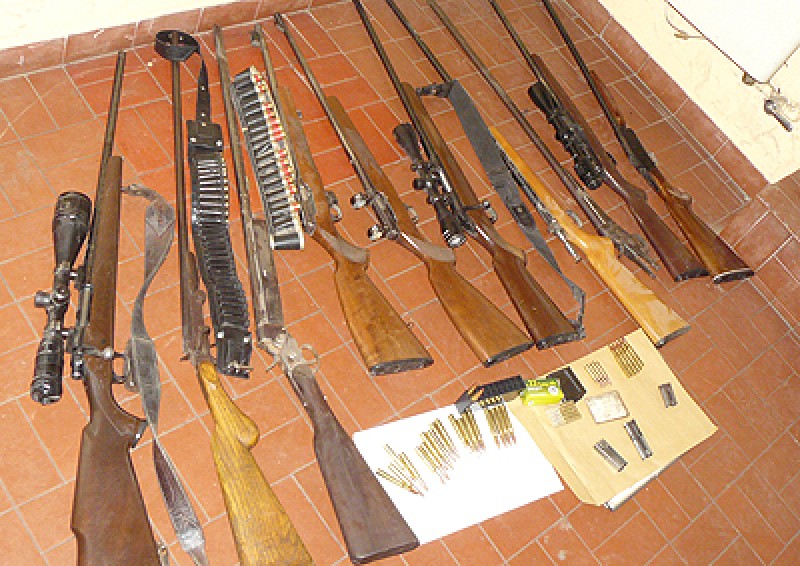 Habiendo irrumpido el personal en la vivienda, se encontró un importante cantidad de armas -10 en total- de distintos calibres, fusiles, escopetas y carabinas.