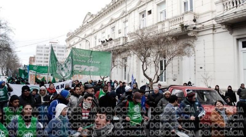 Unos 500 afiliados al gremio reclamaron frente al palacio municipal por la situación que afecta a operarios de los Talleres. Denuncian que tales empleados son perseguidos por pertenecer a ese sindicato y por su filiación política.