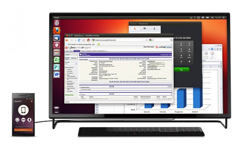 En lo tocante a la conexión al escritorio, cuando lo conectemos tendremos un sistema Ubuntu totalmente funcional e integrado con nuestro teléfono, por lo que podremos ver en la pantalla del ordenador las notificaciones o llamadas que nos llegan al teléfono. Esta integración con el PC tendrá 2 fases, en una primera fase el lanzamiento del Ubuntu Linux se realizará desde Android con la aplicación Ubuntu for Android, poco después del lanzamiento de Ubuntu Edge, este recibirá una pequeña actualización para que el lanzamientod de Ubuntu Linux también se realice desde Ubuntu Touch.