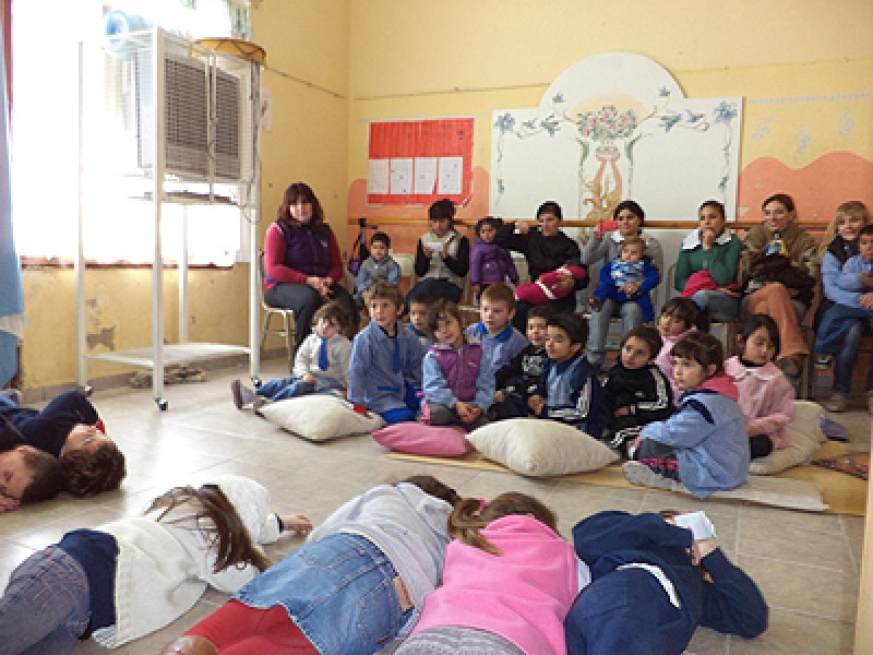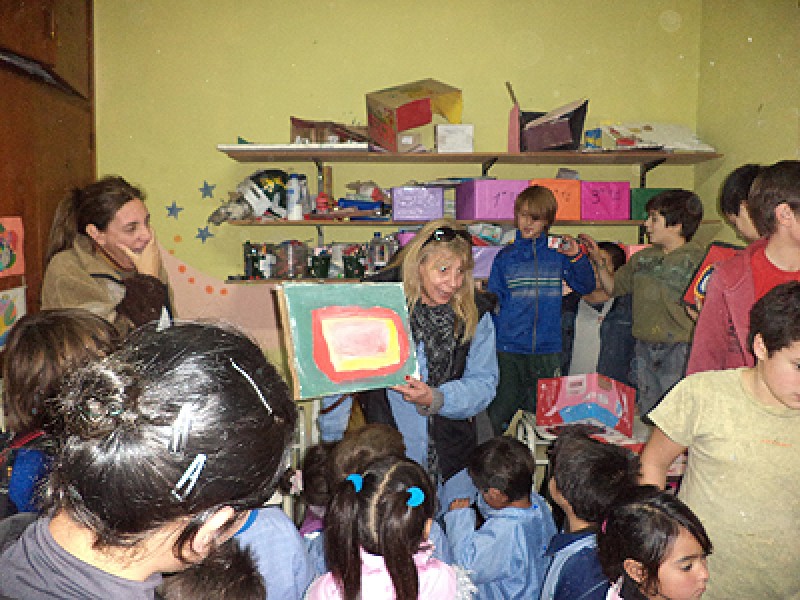 Visitaron la Escuela alumnos de 4 y 5 años con sus familias y la docente Beatriz Burengo, quienes participaron de los talleres que realizaron los docentes de teatro, literatura, música y plástica.