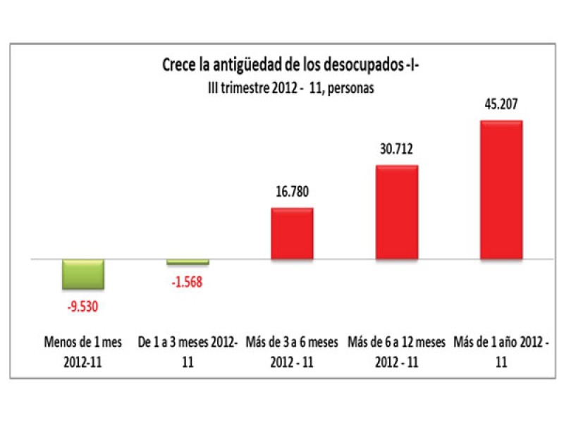"Lamentablemente, la Argentina no cuenta con una serie histórica de significación de este tipo de indicadores, apenas se llevan acumuladas tres mediciones, lo que impide hacer comparaciones con otros ciclos económicos en el país. Sin embargo, el simple cotejo interanual permite observar que pese a no caer el PBI en términos agregados se ha registrado una ampliación de la nómina de desocupados que acumulan meses sin poder reinsertarse en un puesto de trabajo estable", resalta el estudio, a partir de datos del Indec.