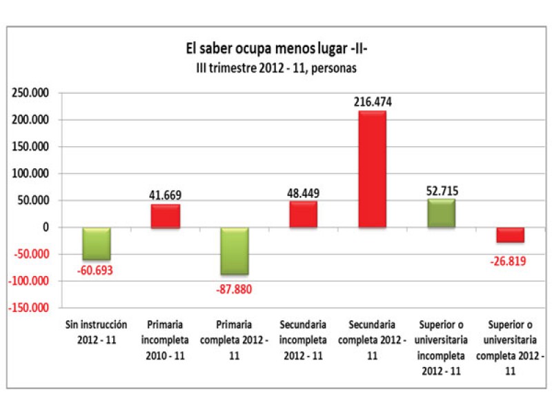Entre los ocupados el análisis de Idelas-UCES observó que en el último año disminuyó la cantidad de los que cuentan con educación superior o universitaria completa, claro indicador de creciente precariedad del mercado laboral.