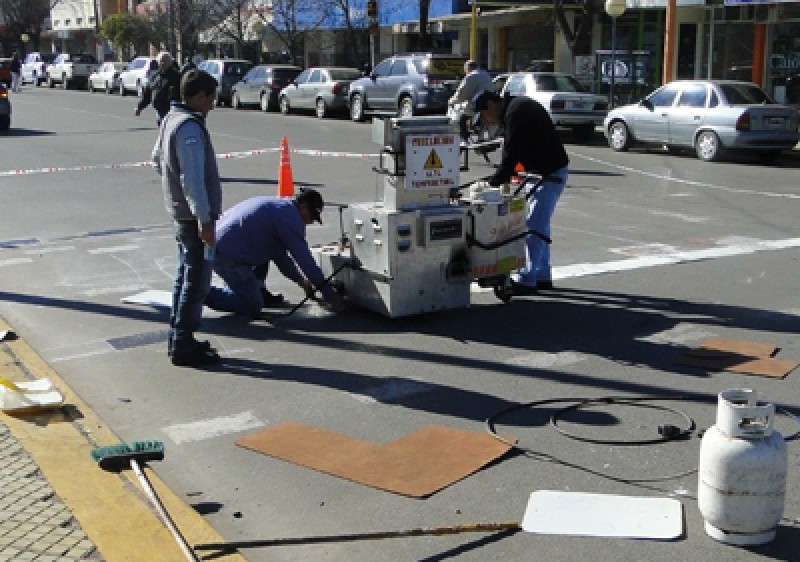 El Gobierno Municipal a través de la Dirección Operativa de Tránsito continúa llevando adelante el pintado de las sendas peatonales del perímetro de Plaza Gral. Belgrano. Se trata de trabajos correspondientes a Demarcación Horizontal que se realiza con material en caliente como así también se aplica material en frío.
