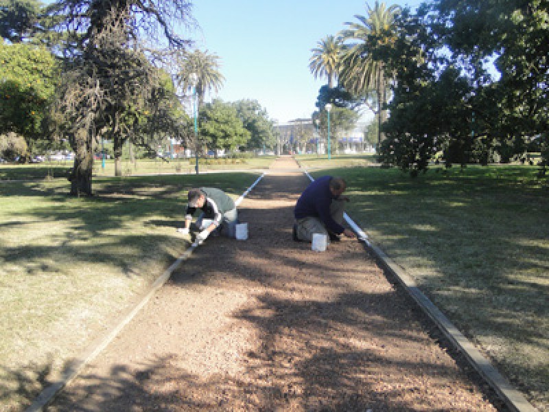 En el Parque Gral. San Martín, se pintan bancos, monumentos y el cantero de las dos medialunas.