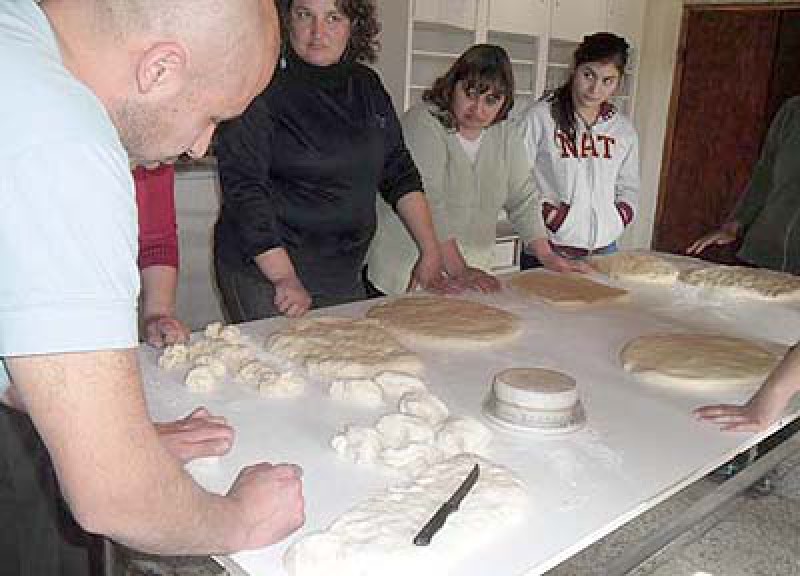 La primera clase se elaboró masa de pizza y pan.La segunda, chips, pebetes, pan de panchos y hamburguesas; y la tercera y última se dedicará a las facturas, cremona y bizcochos.