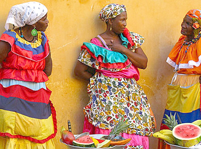 Se las conoce como palenqueras a las mujeres vendedoras que se pasean por sus calles y playas luciendo vestidos de múltiples colores y cestas con productos regionales sobre las cabezas. Aunque el origen de su oficio muestra un costado quizá no tan colorido y apacible como se le puede pedir a un destino vacacional. Herederas de una larga historia protagonizada por los esclavos negros que llegaron a Colombia durante la conquista española, son ejemplo de lucha y perseverancia por la subsistencia propia y de sus familias.