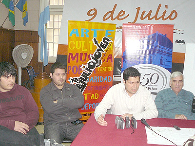 El encuentro con los medios estuvo presidido por el Intendente Municipal, Dr. Walter Battistella, a quien acompañaron el Secretario de Gobierno, Dr. Ignacio Palacios; el coordinador de "9 de Julio Joven", Jorge Delamano y el músico Néstor Zabaletta, integrante de la agrupación de rock de Facundo Quiroga "Jaqueca".