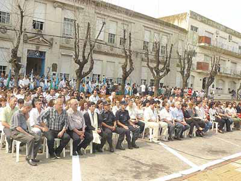 El acto fue presidido por el Intendente Municipal de 9 de Julio, Dr. Walter Battistella, acompañado por el Presidente del Concejo Deliberante, Horacio Baglietto, funcionarios del Gabinete Municipal, concejales y autoridades educativas encabezadas por la Inspectora Jefa Distrital en Educación, Iris Estelrich, del Consejo Escolar, de establecimientos educativos, del ámbito policial, instituciones, docentes, alumnos y público en general.
