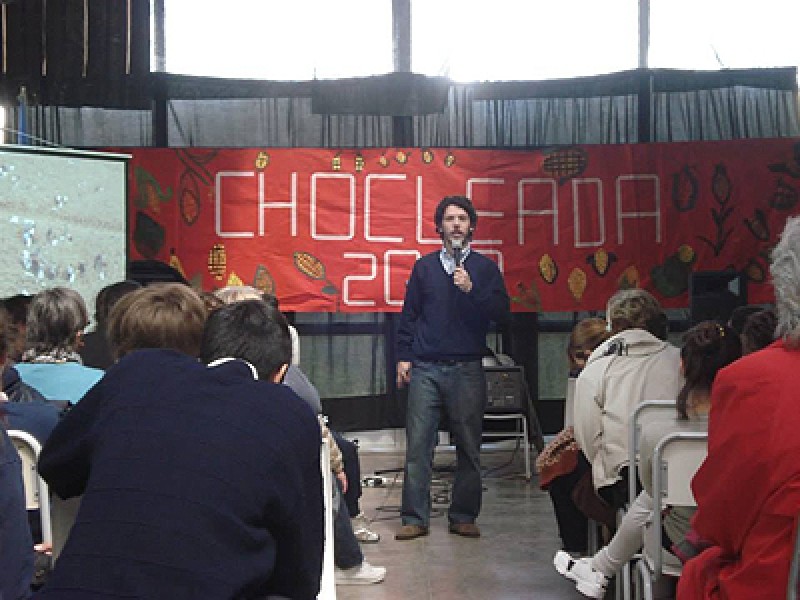 Por la tarde se realizó la Charla "Cómo promover valores en nuestros hijos", en la que participaron padres y docentes de las comunida-des educativas del Colegio Jesús Sacramentado y del Colegio Los Ceibos. Tomando como referencia el decálogo de Valores que de La Chocleada, el Lic. Arturo Clariá movilizó a los adultos hacia la reflexión personal sobre cómo acompañar el crecimiento de los niños y adolescentes, promoviendo la formación en valores a partir de la coherencia y concordancia con los mismos en la vida cotidiana personal y familiar.