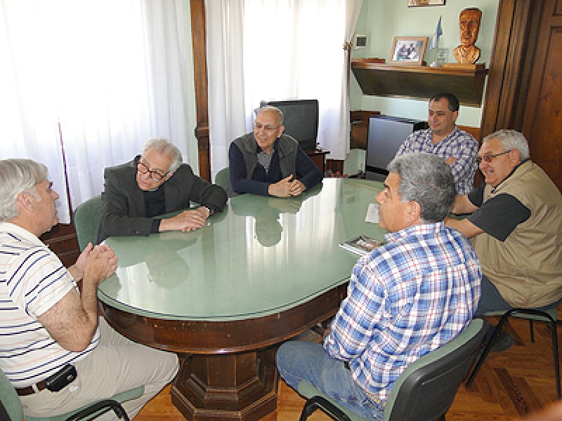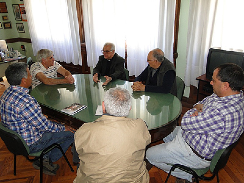 En el marco del encuentro, en el que fue acompañado por el sacerdote marianista Manuel Prieto y los convecinos Claudio Plana, Juan Carlos Vaudagna y Horacio Bonfiglio, el jefe comunal saludó al sacerdote y le entregó presentes alusivos a la celebración del sesquicentenario de la fundación de 9 de Julio.