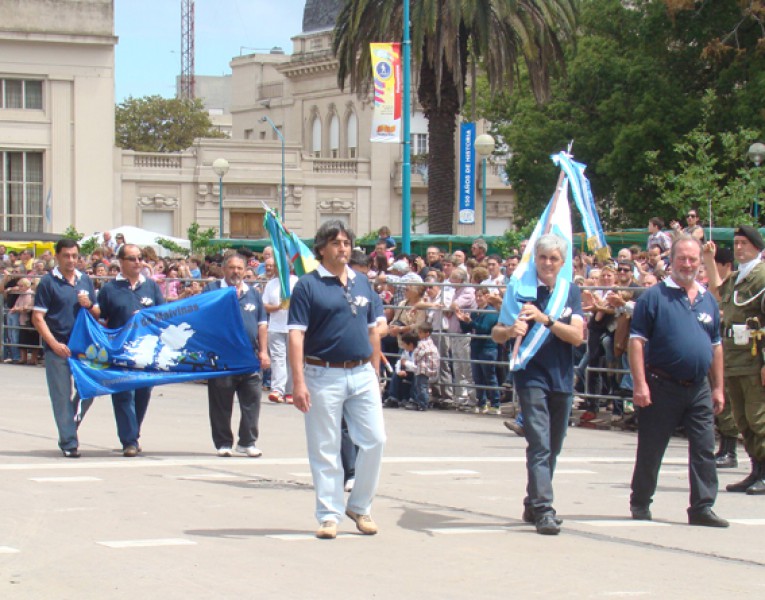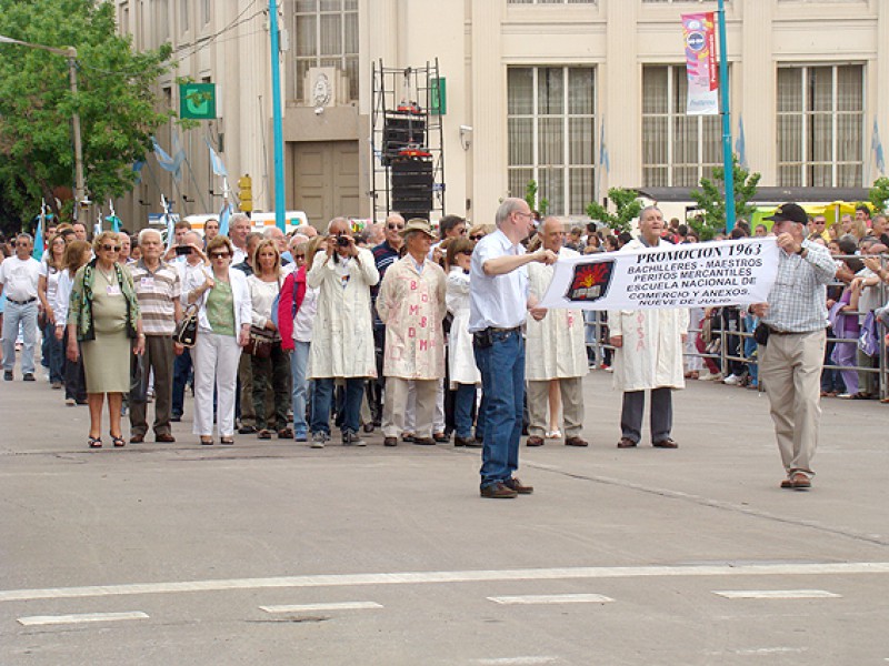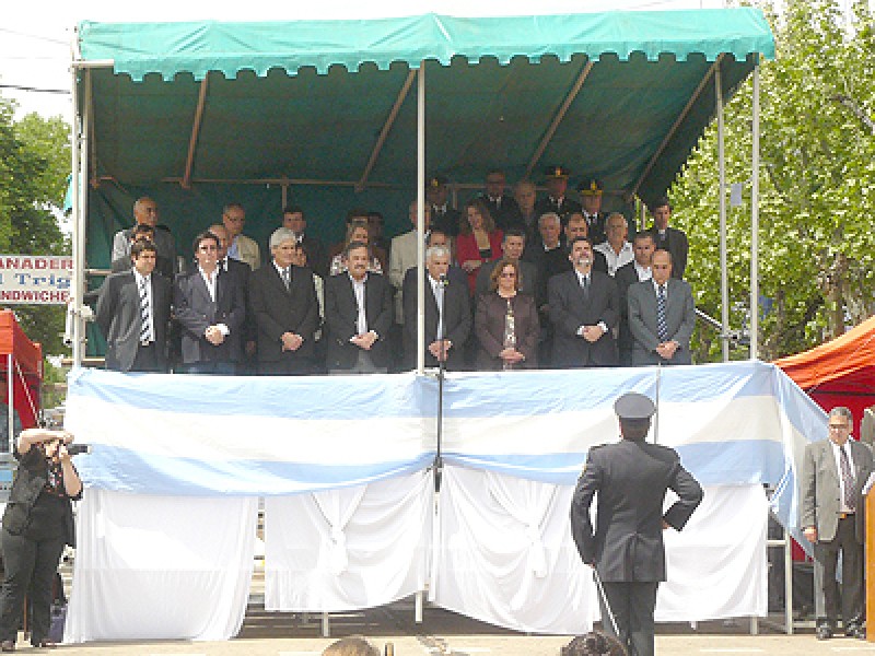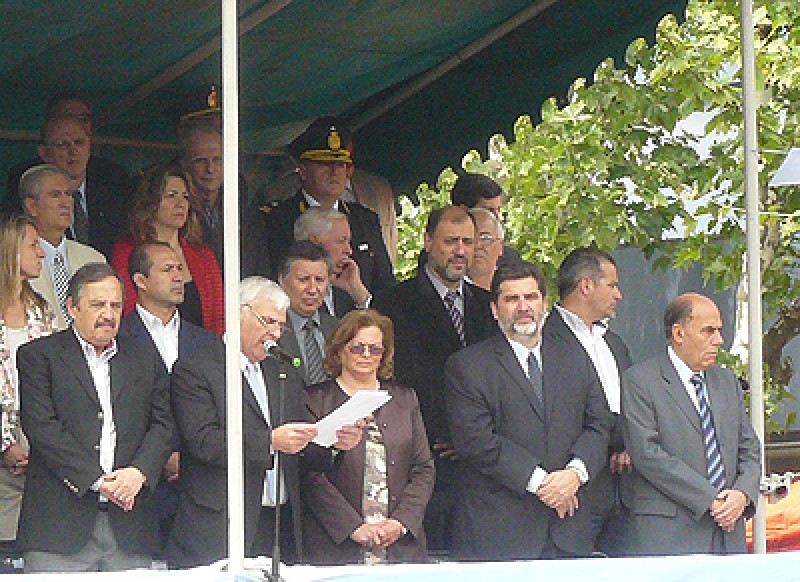 Tras la oración por la Comunidad Nuevejuliense, se dio lectura de a las salutaciones y dejó sus conceptos el Intendente Municipal, Dr. Walter Battistella, tras lo cual se dio inicio al desfile escolar y de instituciones.