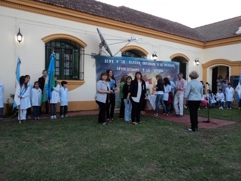 Durante el transcurso del acto se descubrió una placa en homenaje a los fundadores, se entregaron recordatorios a ex docentes y fueron vertidas las palabras de la docente Ana María Quemehuencho, maestra a cargo de la dirección en la actualidad, de la Sra. Cecilia Napoli quien fue directora durante 14 años, de bisnietos de la familia López Alfaro, de dos ex alumnos Reynaldo Miguel y Milva M. Molina y finalizando hizo lo propio la inspectora Jefe Distrital Adriana Summa.