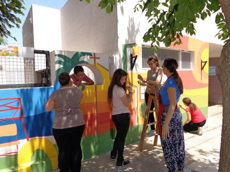 El día miércoles de 13 a 16 horas en la unidad Sanitaria se pintó un mural artístico resultado de una producción colectiva con participación de estudiantes secundarios, equipo de salud y habitantes del barrio.