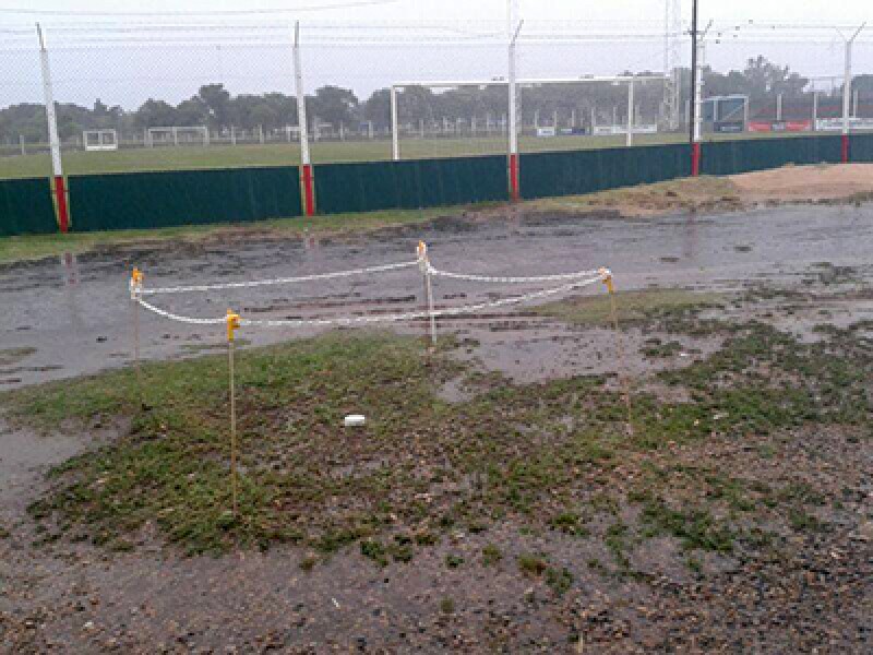 Las malas condiciones del campo de juego del conjunto de Agropecuario, que posee un piso que nunca estuvo a la altura de las circunstancias, no resistió las fuertes precipitaciones que se abatieron sobre el mismo desde las 15 hs., por lo que media hora antes del inicio pautado para las 19, el árbitro decidió suspender el encuentro.