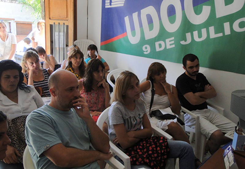 De acuerdo a lo anticipado por nuestro medio, la Unión de Docentes de la Provincia de Buenos Aires (UDOCBA), desarrolló el pasado jueves en su sede una importante asamblea, oportunidad en la que se contó con la presencia de la Secretaria de Prensa del gremio, Adriana Monje y la Subsecretaria de Acción Social, Silvia Herrera; instancia que fue seguida por importante asistencia de afiliados y no afiliados.
