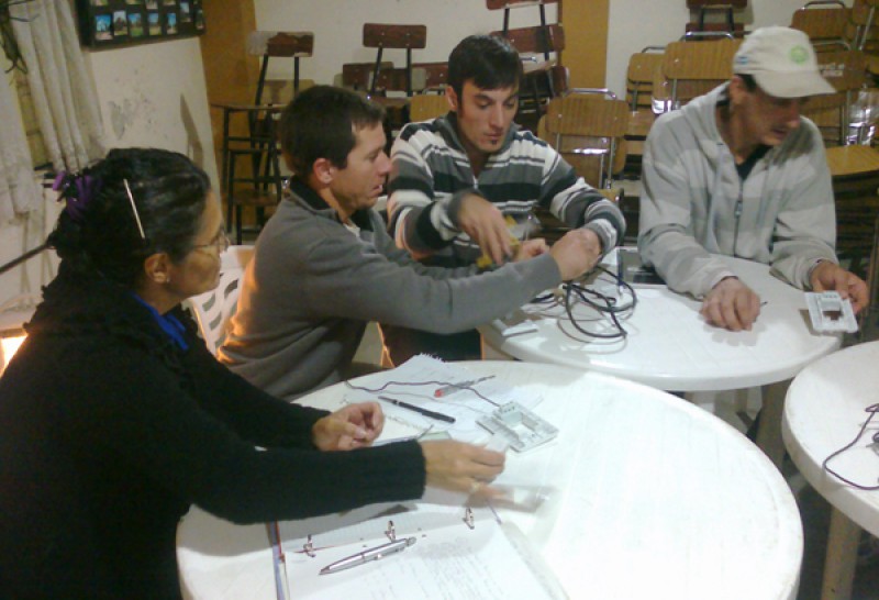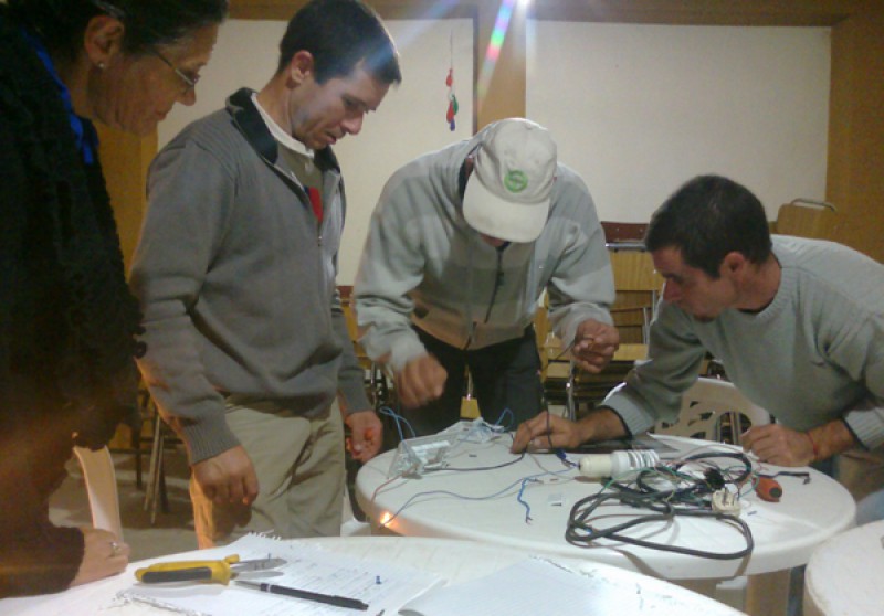 En esta oportunidad, el profesor y su grupo se reunieron a continuar el proceso de enseñanza y aprendizaje en el espacio físico de la Sociedad de Fomento cuyo presidente, el Sr. Mario Schell ofreció gentilmente para que pudiera darse continuidad y finalización a esta importante capacitación laboral que se dicta sólo para vecinos de esa localidad.