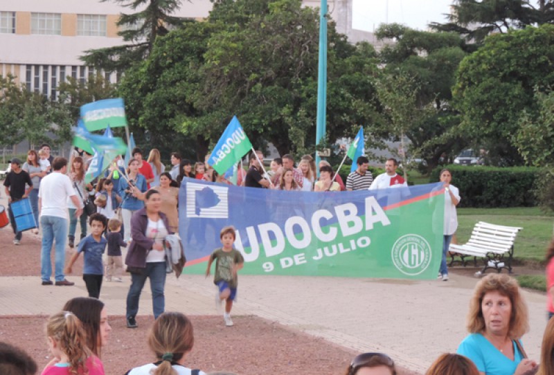 En horas de la tarde de ayer, la totalidad de los gremios docentes que tienen representación en 9 de Julio, desarrollaron una marcha por las calles de la ciudad, reclamando por la recomposición laboral, obras de infraestructura y atención de los comedores escolares, en una convocatoria que tuvo carácter abierto a la comunidad, con la intención de sumar a alumnos y padres que compartan este llamado a la atención a las autoridades provinciales.