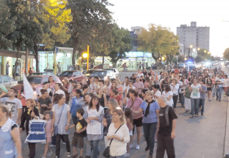 Una numerosa columna recorrió las inmediaciones de Plaza Belgrano, acompañada por una batucada, banderas y pancartas; en tanto que se anunció para el próximo domingo una marcha similar, pero con antorchas, adhiriendo a una movilización que se repetirá en toda la provincia.
