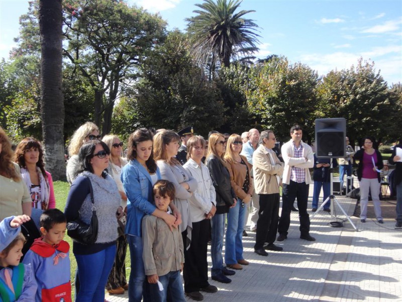 Hubo palabras referidas a la fecha, colocación ofrenda floral ante el busto emplazado en esa, marcha de las Malvinas interpretado por el Coro Polifónico Municipal.