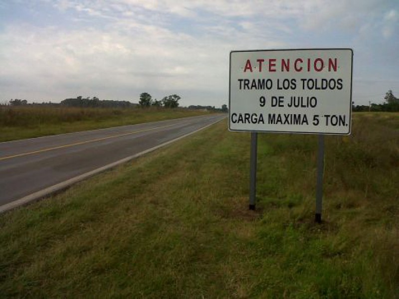 Mientras tanto, desde la Dirección de Vialidad de la provincia de Buenos Aires dependiente del Ministerio de Infraestructura, han comunicado la restricción provisoria de la circulación de camiones y ómnibus en ambos sentidos sobre la Ruta 65 entre 9 de Julio y Los Toldos, debido a deterioro de alcantarilla en el Km. 130. El tramo sólo quedará habilitado para transito liviano- autos y camionetas.