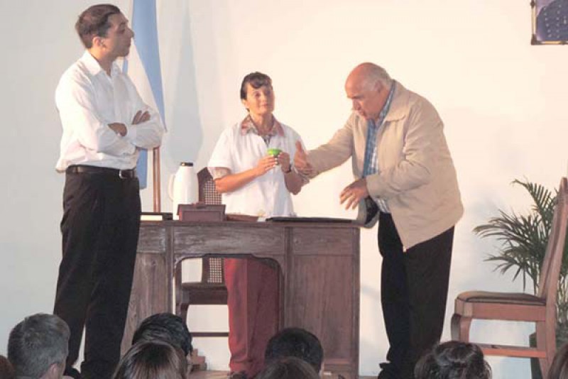 El elenco, conformado por Juan Fassino, (Intendente), Georgina Benedetti (la secretaria del Intendente), Félix Martínez (Pte. Asociación Turismo de Carretera) y Elena Mosca (maestranza municipal), entregó una excelente pieza, que deleitó al numeroso público presente.
