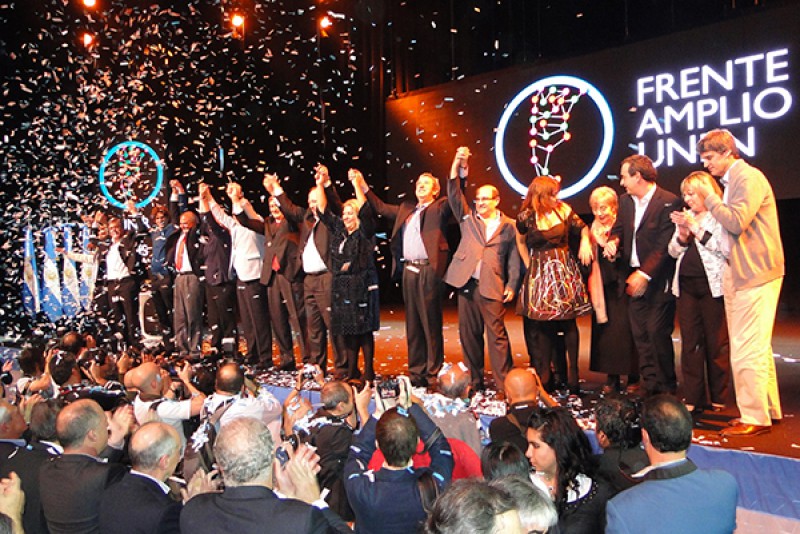 Después del breve discurso, las máximas autoridades partidarias subieron al escenario. Los representantes de las fuerzas políticas que firmaron el acta fueron Hermes Binner (socialismo), Ernesto Sanz (UCR), Elisa Carrió (Coalición Cívica), Fernando “Pino” Solanas (Proyecto Sur), Margarita Stolbizer (GEN), Victoria Donda (Libres del Sur), Alfonso Prat-Gay , Martín Lousteau y Luis Juez (Frente Cívico).