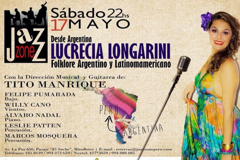 La joven dudignaquense  Lucrecia Longarini, se encuentra realizando una gira internacional por Perú mostrando todo su repertorio con la mejor música y canto al Ritmo del Folklore Argentino y Latinoamericano.