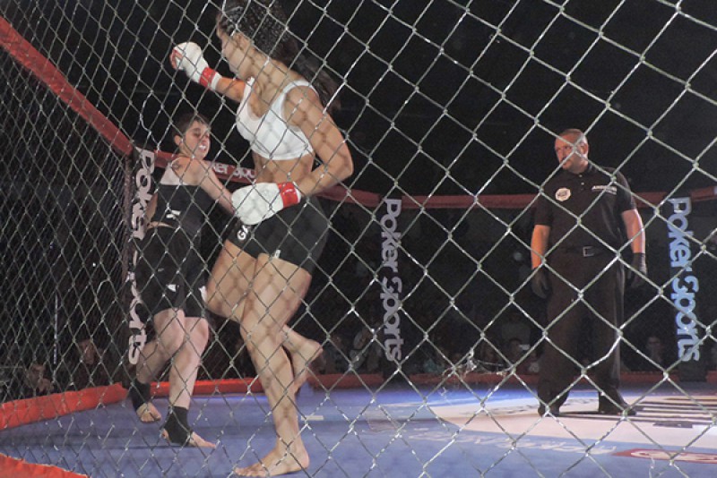 En la pelea de fondo, en categoría gallo de 55 kg, la nuevejuliense Pamela Galdós venció a Lucía Morella por nocaut técnico.