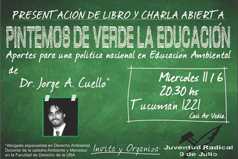 El libro “Pintemos de Verde la Educación” es una invitación a la imaginación y a la acción de los distintos sectores de la sociedad para que la educación ambiental esté presente en las escuelas y universidades, los centros de formación docente e institutos técnicos, en los medios de comunicación y las redes sociales, en el estado y en las empresas, en el trabajo y en el barrio y en las organizaciones políticas, sociales y ambientales.