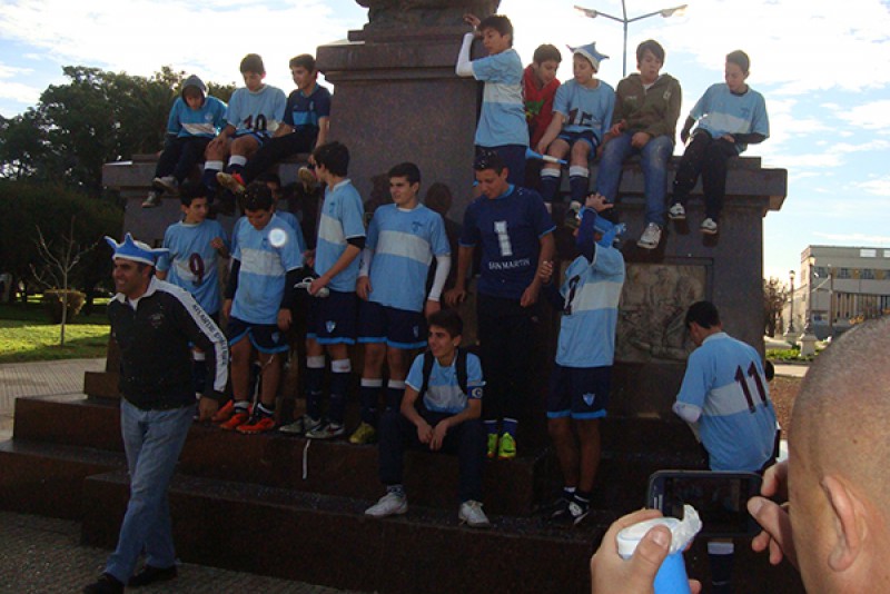 Finalizado el partido, jugadores, cuerpo técnico, familiares, simpatizantes y directivos festejaron el logro en una caravana que finalizó en Plaza Gral. Belgrano.