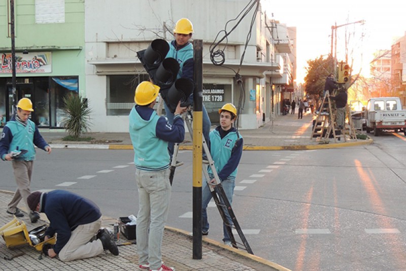 En la mañana de ayer, miércoles 18, el Gobierno Municipal, de manera conjunta con la Escuela de Educación Técnica Nº 2 “Mercedes Vázquez de Labbé”, a través de alumnos y profesores, continuaron realizando el recambio de semáforos antiguos de lámparas incandescentes por la nueva tecnología de led, en la intersección de Av. Mitre y calle H. Yrigoyen.