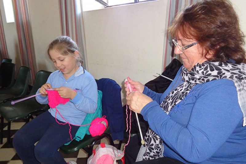 Cáritas, la Asociación de padres del Colegio San Agustín y el Nivel Primario organizaron tardes de: abuelas, mamas + niños + tejido = solidaridad.