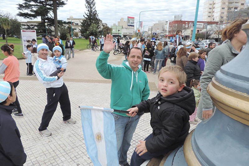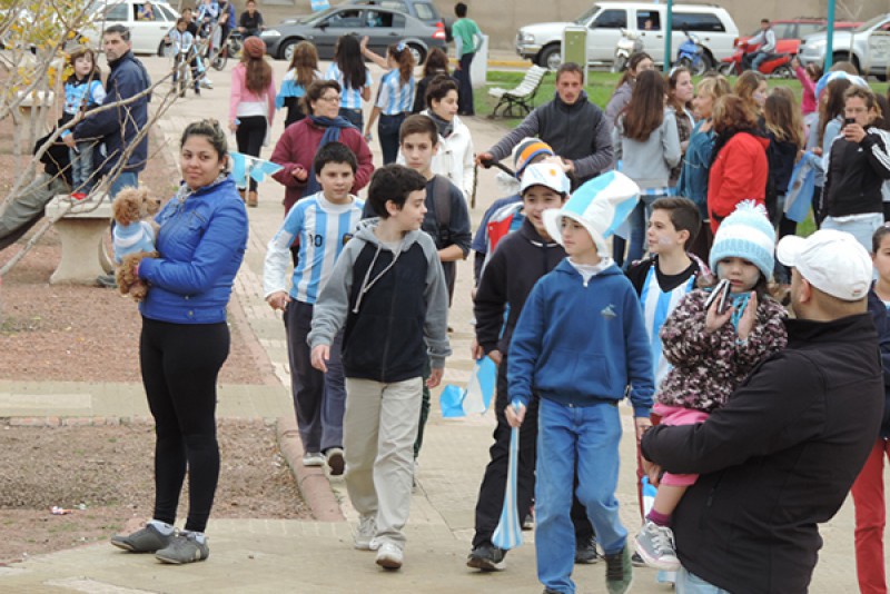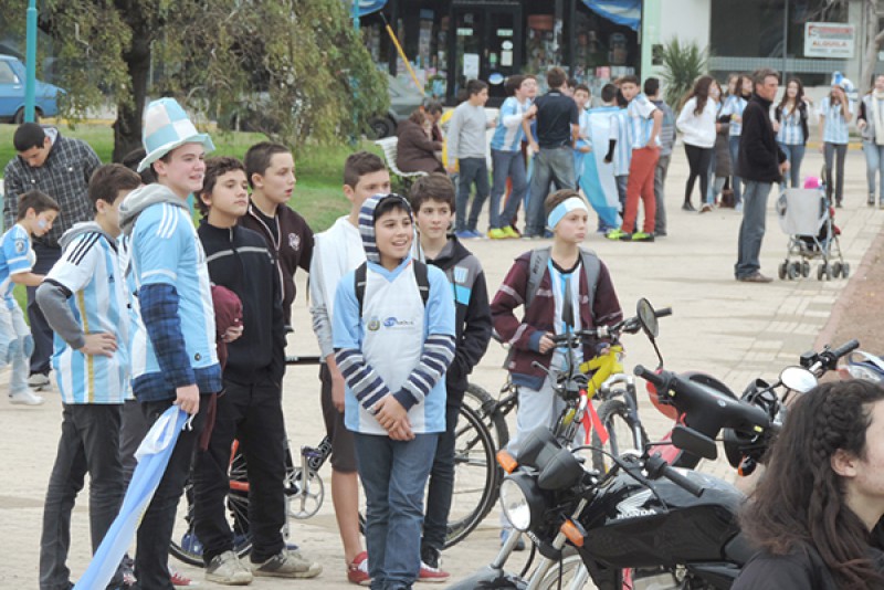En la fría tarde del sábado, apenas terminado el cotejo de Argentina ante Irán por la segunda fecha del Grupo “F” del Mundial Brasil 2014 en Brasil, espontánea pero tibiamente algunos vecinos se acercaron a Plaza Belgrano para expresar su satisfacción por la clasificación del seleccionado nacional a la segunda ronda mundialista.