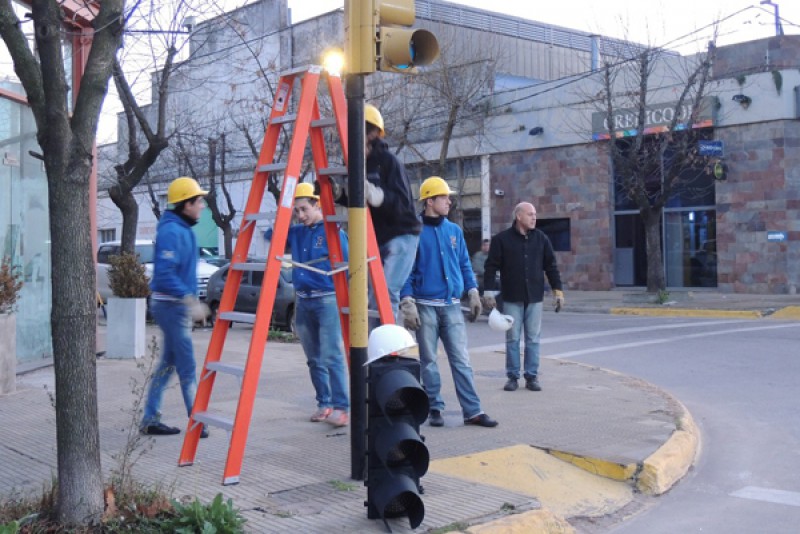 En la mañana de ayer, el Gobierno Municipal, de manera conjunta con la Escuela de Educación Técnica Nº 2 “Mercedes Vázquez de Labbé”, a través de alumnos y profesores, continuaron realizando el recambio de semáforos antiguos de lámparas incandescentes por la nueva tecnología de leds, en la intersección de Av. San Martín y Libertad.